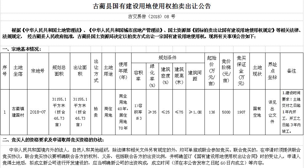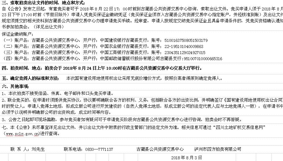 古藺縣國有建設用地使用權掛牌出讓變更公告