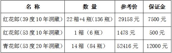 以上白酒均經(jīng)專業(yè)人員鑒定為正品,生產(chǎn)年份為2010年至2018年不等,拍賣標的物先整體后分拍,整體保證金為20000元整。